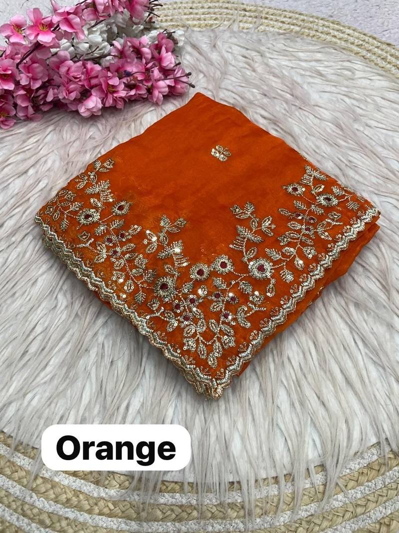| Product Name | Orange Fendy Chiffon Two Ton Saree And Blouse With Sequence Embroidery Work | |