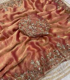 Peach fendy chiffon two ton saree and blouse with sequence embroidery work