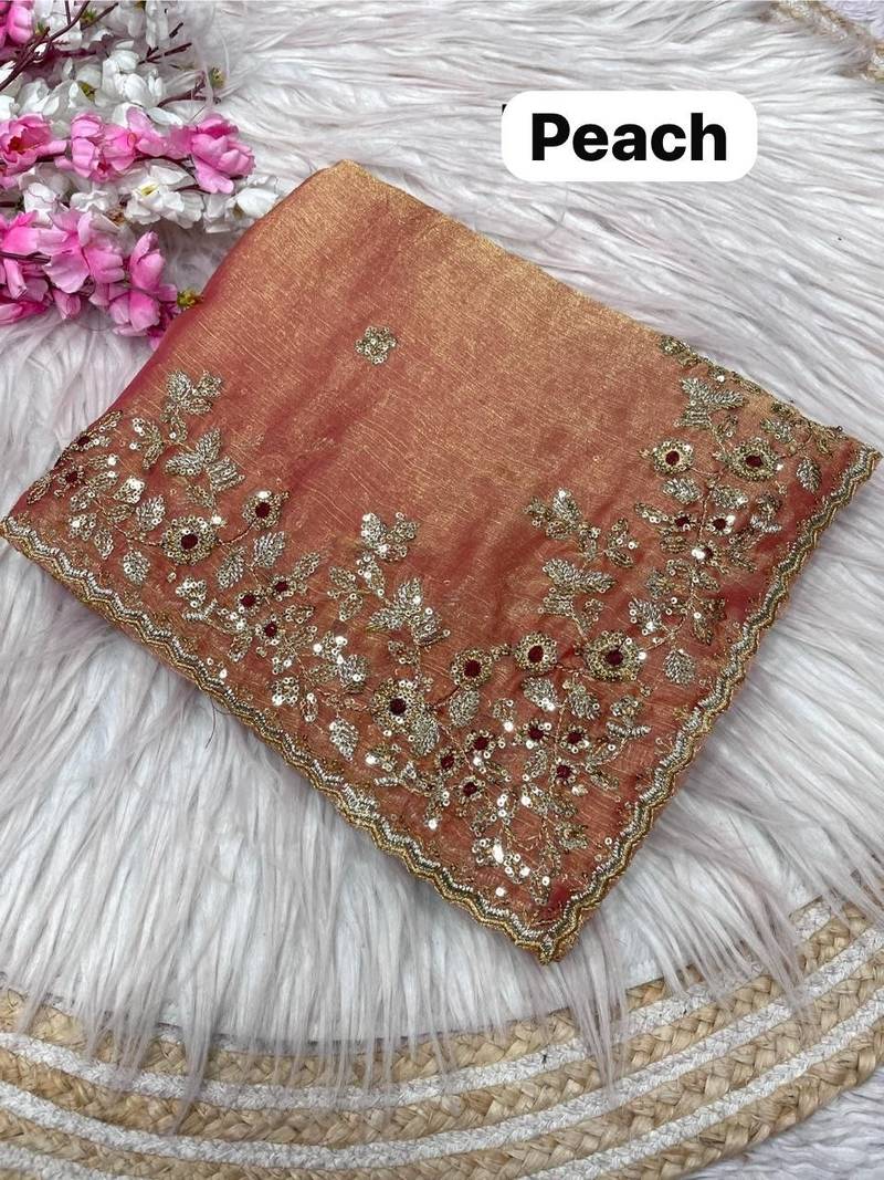 | Product Name | Peach Fendy Chiffon Two Ton Saree And Blouse With Sequence Embroidery Work | |
