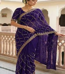 Purple pure space silk saree with beautiful sequence embroidery work with cut work border