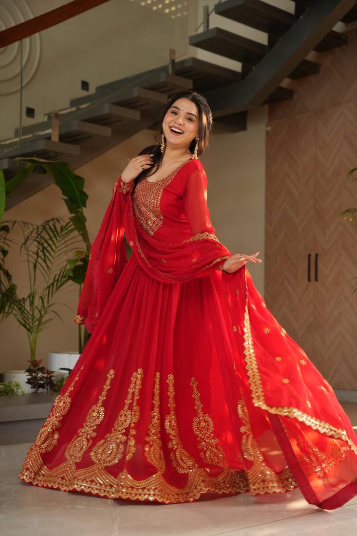 | Product Name | Red Faux Blooming Georgette With Rich Sequins Multi Embroidered Gown With Dupatta | |