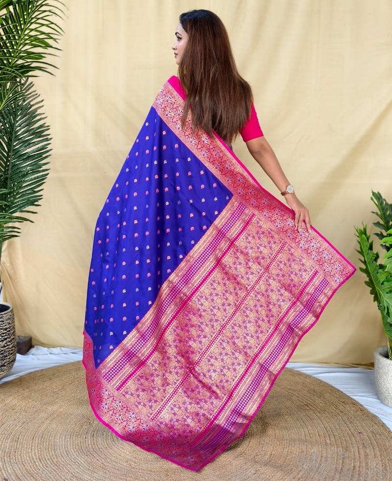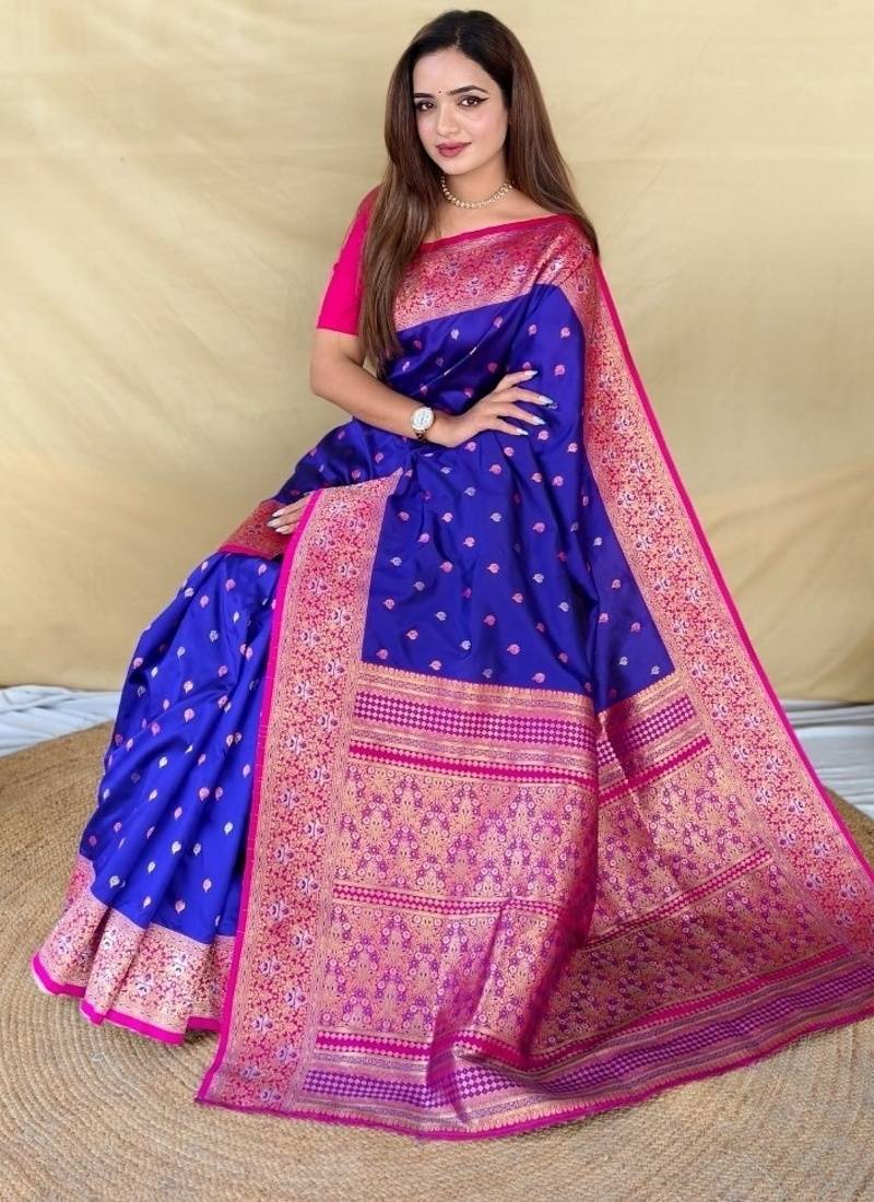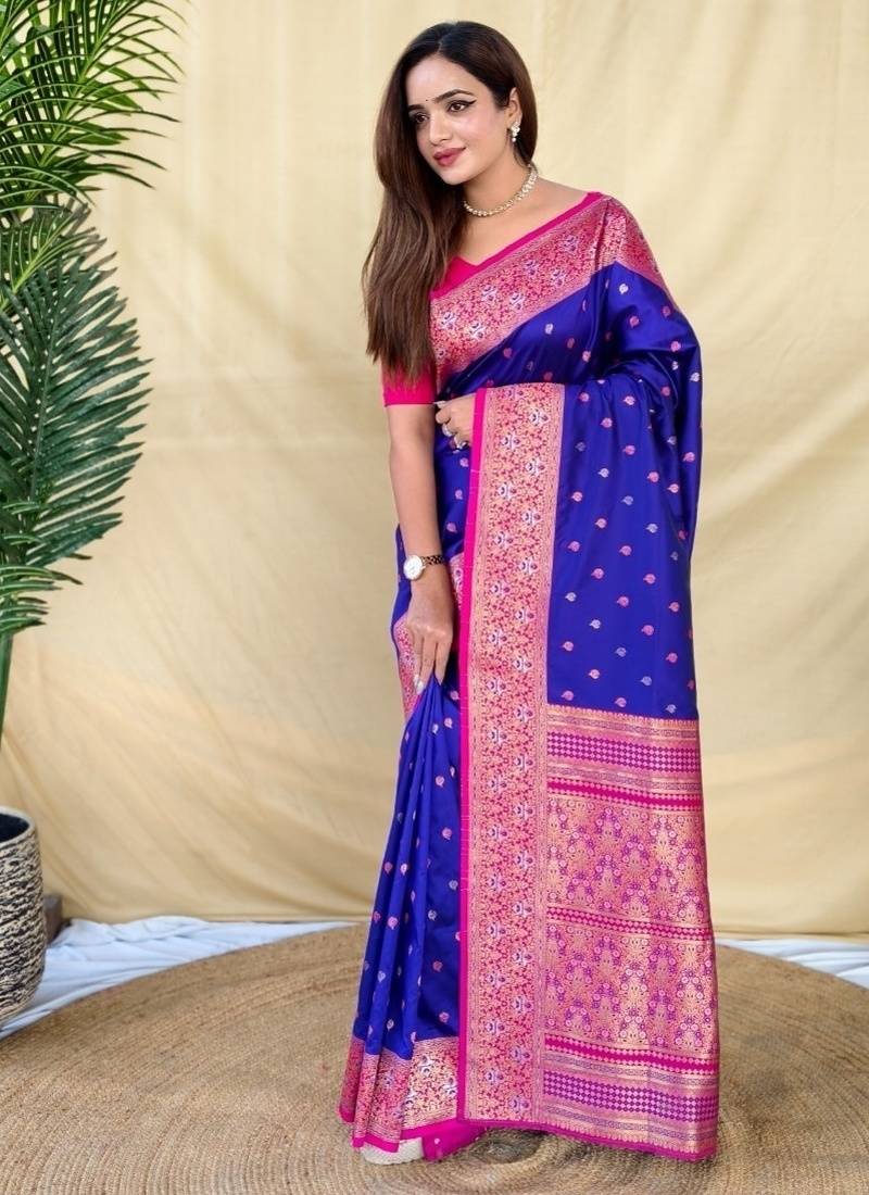 | Product Description | Elegant Royal Blue Soft Silk Saree Featuring Delicate Zari Woven Buttas Across The Body. Enhanced With A Zari Woven Contrast Border And A Rich Zari Woven Contrast Pallu, Giving The Saree A Festive And Luxurious Appeal.