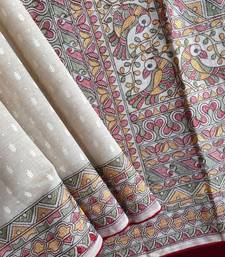 Product Description | Tussar Saree With All Over Position Embroidery, Traditional Madhubani Embroidered Pallu And Piping Border.