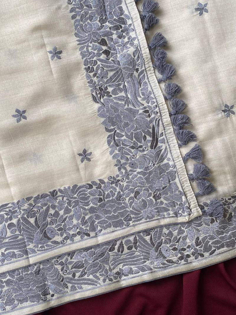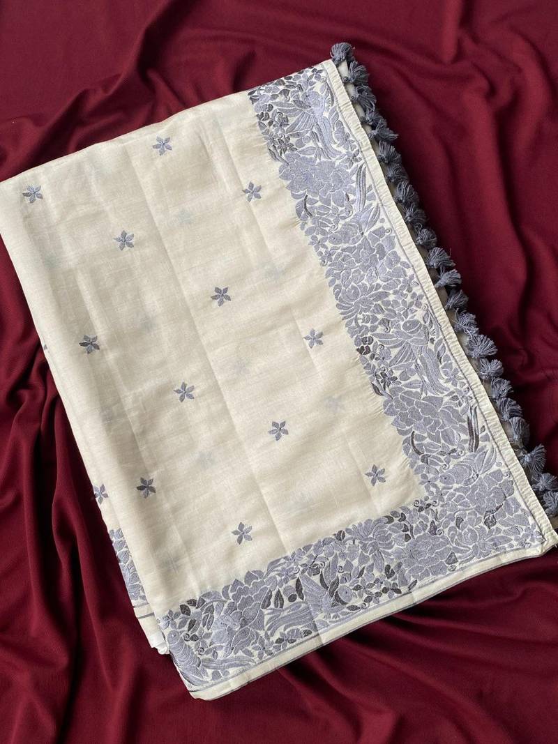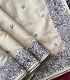 Product Name | White Loom Tussar Saree With All Over Single Tone Designer Embroidery Pattern | |