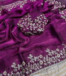 Wine fendy chiffon two ton saree and blouse with sequence embroidery work