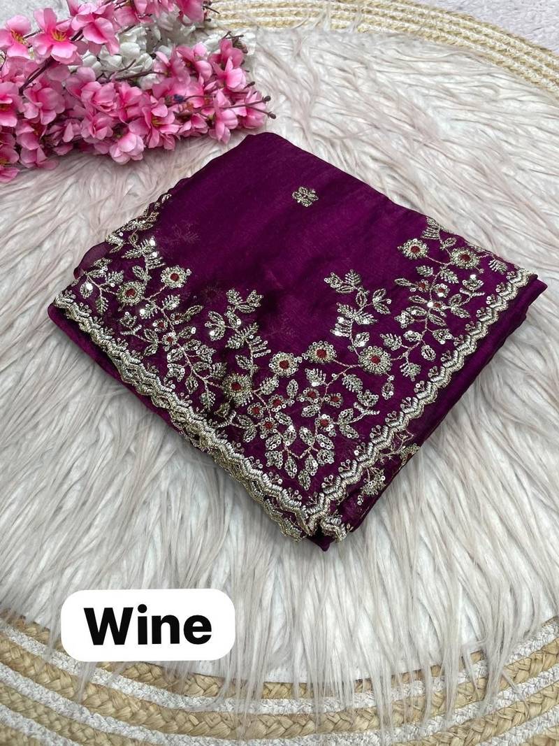 | Product Name | Wine Fendy Chiffon Two Ton Saree And Blouse With Sequence Embroidery Work | |