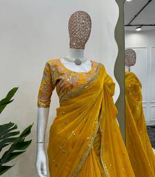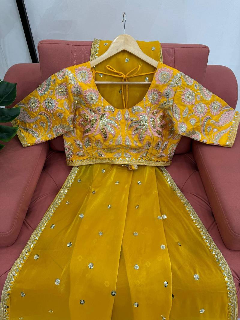 | Product Name | Yellow Jimmy Choo Silk With 3mm Sequence Embroidery Work Lace Border With Blouse | |