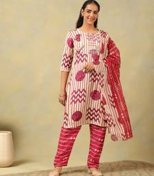 | Product Description | Brighten Your Ethnic Collection With The Diya Suit Set, Showcasing A Vibrant Crimson Geometric Block Print Usp. This Ensemble Features A Striking Mix Of Vertical Stripes, Bold Circular Motifs, And Zigzag Patterns In A Rich Berry Red Tone Against A Cream Canvas. The Look Is Anchored By An Intricately Embroidered Square Yoke And Is Perfectly Coordinated With Deep Crimson Trousers Featuring A Geometric Border Print, Offering A Fresh And Energetic Take On Traditional Indian Block Printing. |