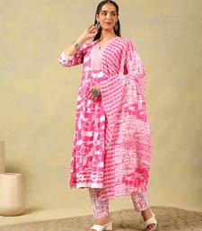 | Product Description | Brighten Any Occasion With The Ishani Suit Set, Featuring A Bold Radiant Abstract Print Usp. This Vibrant Pink Anarkali Silhouette Is Adorned With An Energetic Mix Of Geometric Lines And Abstract Shapes, Creating A Modern And Artistic Ethnic Look. The Ensemble Is Highlighted By Delicate White Lace Detailing On The V Neckline And Sleeve Cuffs, Paired With Coordinating Printed Trousers And A Light, Patterned Dupatta For A Fresh, Spirited Traditional Style. |