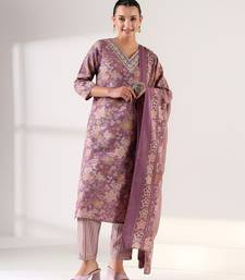 | Product Description | Exude Timeless Elegance With The Kashmiri Kashish Suit Set, A Sophisticated 3 Piece Ensemble In A Dreamy Dusty Lavender. This Set Features A Straight Cut Kurta Adorned With A Dense, Antique Botanical Tapestry Print And A Refined V Neckline Detailed With Intricate Geometric Thread Embroidery. Paired With Modern Pinstriped Trousers And A Matching Printed Dupatta, It’s The Perfect Blend Of Vintage Artistry And Contemporary Chic For Your Festive Or Formal Wardrobe. |