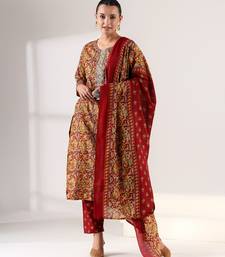 | Product Description | Embrace The Deep, Soulful Tones Of Our Manjari Suit Set, A 3 Piece Ensemble That Celebrates Traditional Indian Artistry. The Kurta Is Drenched In A Rich Maroon Wine Base, Featuring An All Over Ajrakh Inspired Intricate Floral And Paisley Print In Earthy Mustard And Sage Hues. The Design Is Highlighted By A Structured Rectangular Neck Placket Adorned With Delicate Chikankari Style Embroidery And Silver Gota Patti Accents. Paired With Coordinating Small Butti Print Trousers And A Matching Maroon Dupatta, This Set Is A Masterpiece Of Ethnic Elegance. |