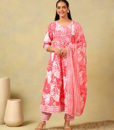 | Product Description | Step Into The Spotlight With The Zoya Suit Set, Showcasing A Captivating Lush Floral Print Usp. This Elegant Anarkali Silhouette Features A Vibrant Coral Pink Base Adorned With Oversized White Botanical Motifs That Create A High Contrast, Garden Fresh Look. The Outfit Is Detailed With A Heavily Embroidered Rectangular Yoke And Finished With Coordinating Zigzag Patterned Trousers And A Flowing Floral Dupatta, Offering A Sophisticated And Festive Traditional Indian Aesthetic. |