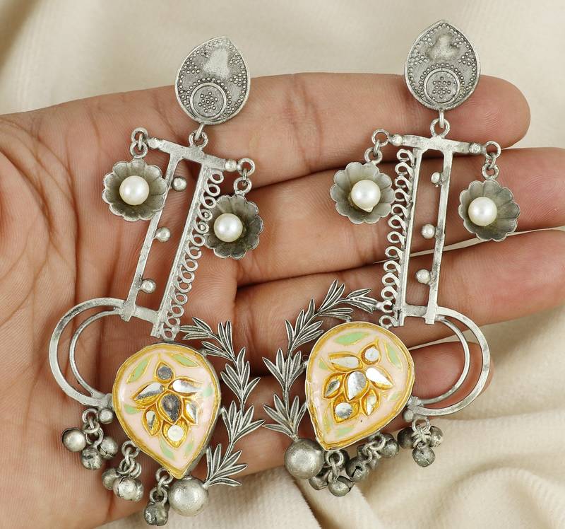 Black oxidize meenakari earrings