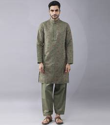 Green silk floral printed mens kurta & pant