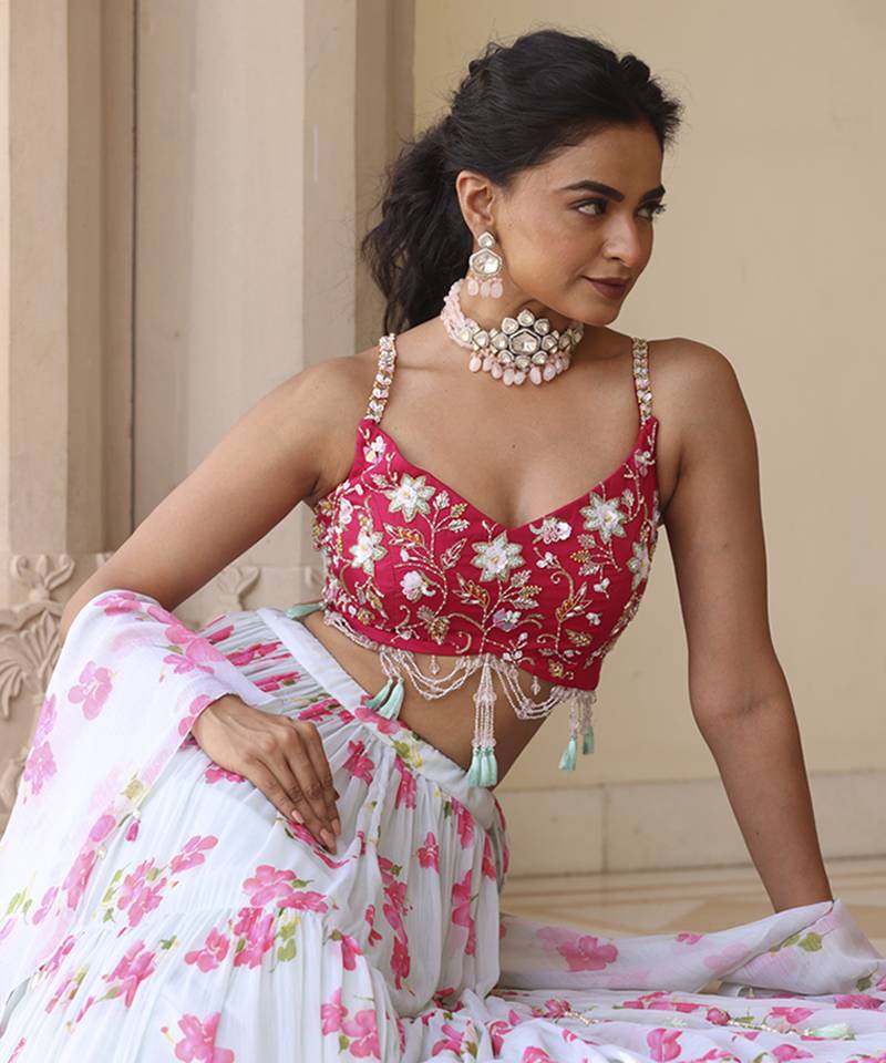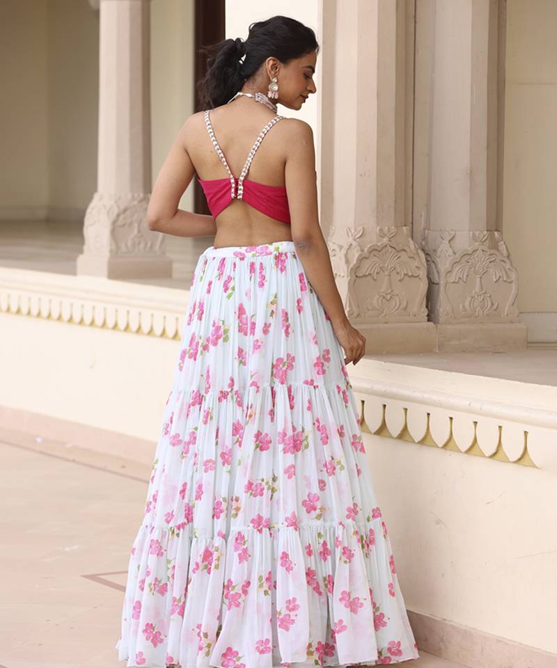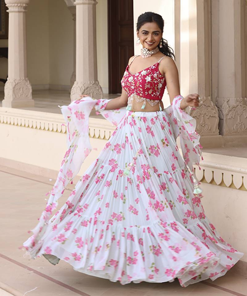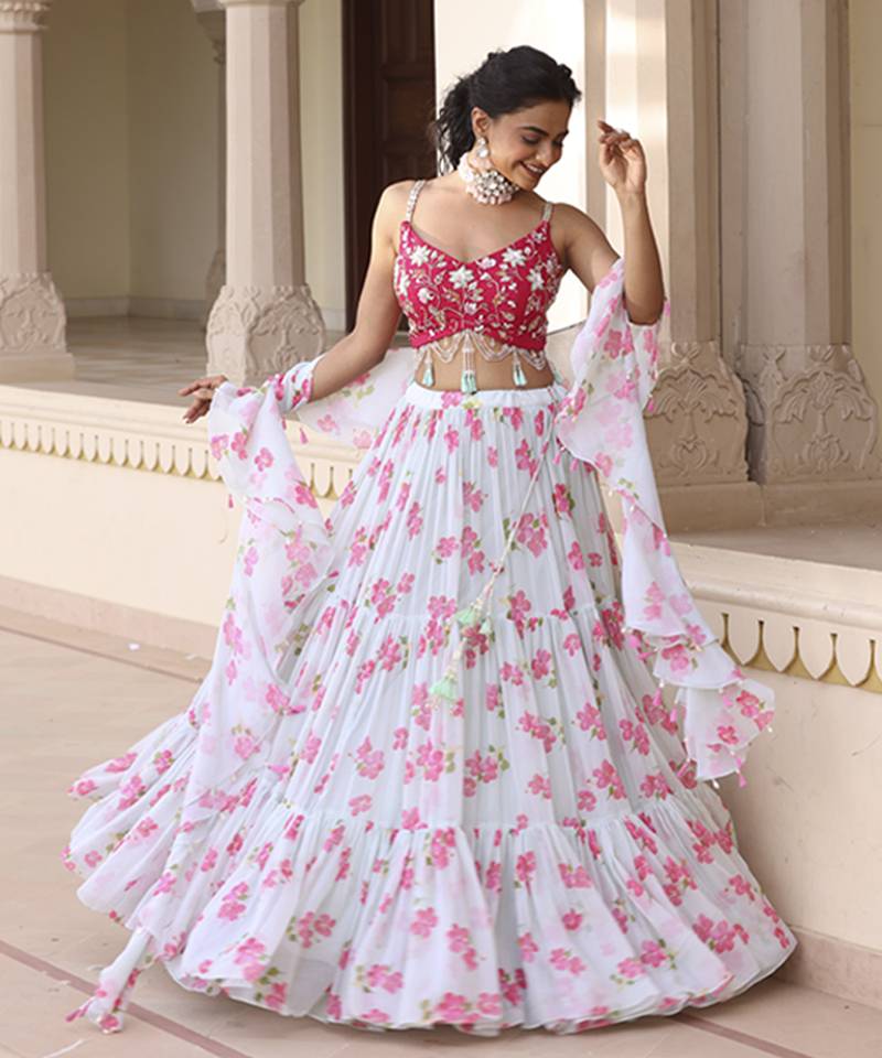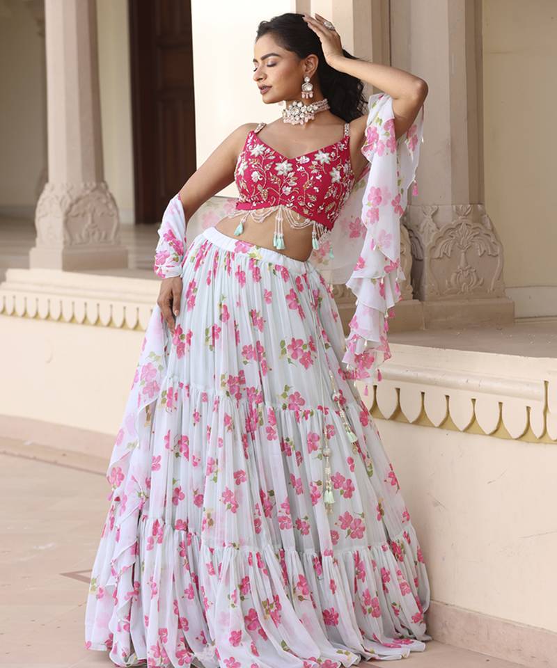 | Product Name | Light Green Floral Printed Chiffon Lehenga With Embroidered Blouse | |