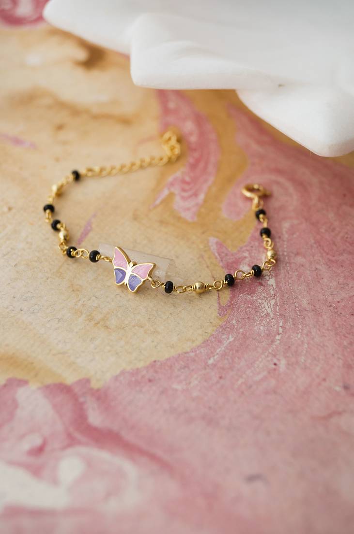 | Product Name | Gold Plated Butter Fly Black Beads Nazariya Bracelet | |