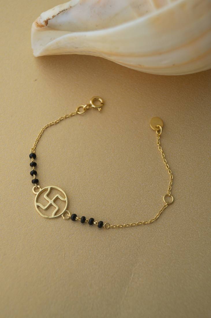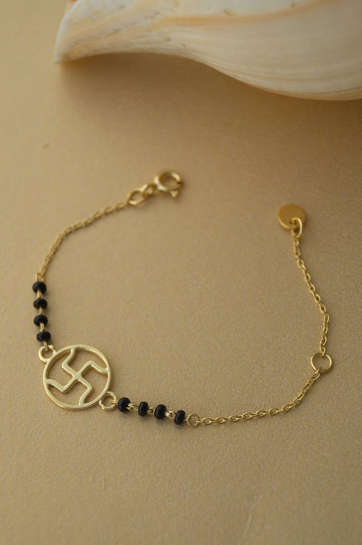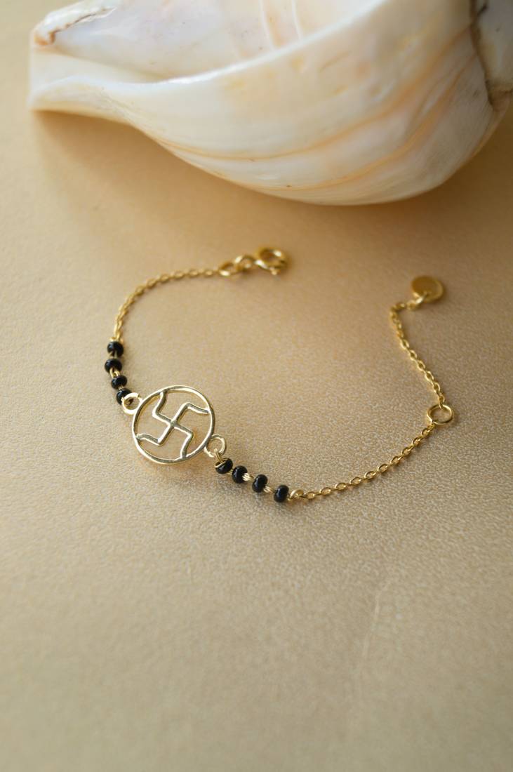 | Product Name | Gold Plated Swastik Black Beads Nazariya Bracelet | |