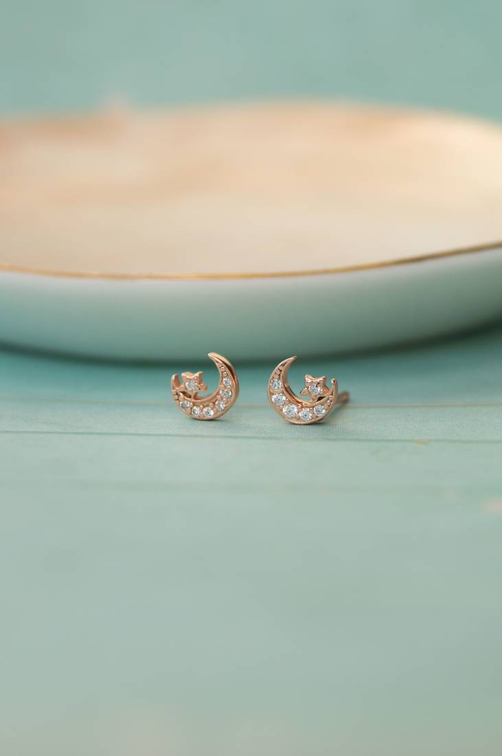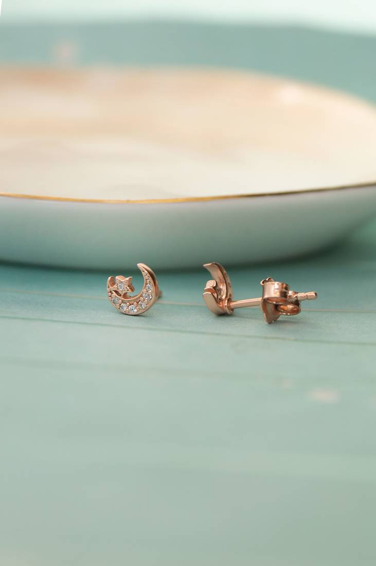 | Product Name | Rose Gold Plated Star & Moon Stud Cubic Zirconia Earring | |