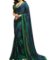 Blue printed georgette saree with blouse
