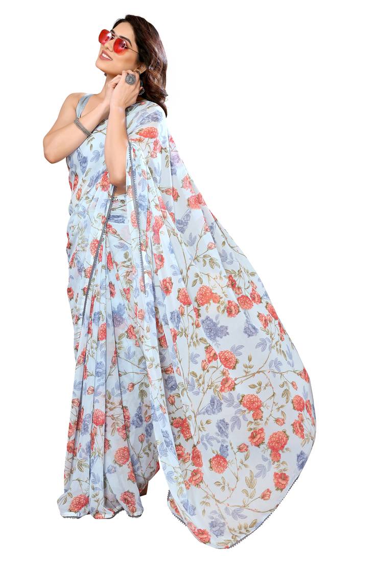 | • | Saree | : | Color- Sky Blue / Fabric- Georgette |