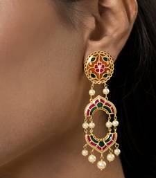 Product Description | Adorn Yourself With These Exquisite Dangle Earrings, Meticulously Handcrafted From 925 Sterling Silver And Bathed In A Luxurious, Thick Layer Of Gold Plating. They're A True Celebration Of Color, Featuring Intricate Enamel Work In Vibrant Hues Of Pink And Green.The Oblong Stud, Beautifully Adorned With Arch Motifs, Adds A Touch Of Classic Charm.