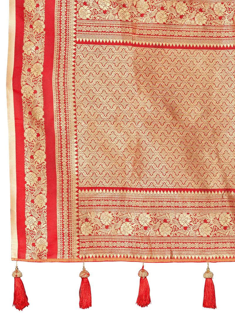 | Product Name | Banarasi Satin Silk Blend Woven Creamy Beige & Red Saree With Heavy Jacquard Work Saree With Blouse Piece | |