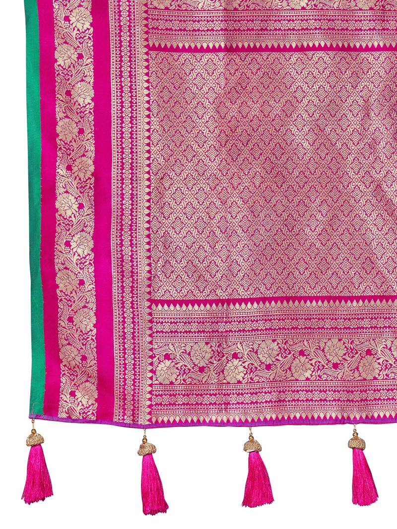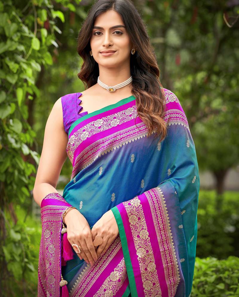 | Product Name | Banarasi Satin Silk Blend Woven Deep Blue & Pink Saree With Heavy Jacquard Work Saree With Blouse Piece | |