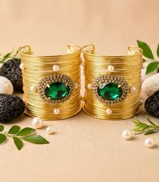 | Product Name | Combo Of Two Green Crystal Cz Pearl Stone Western Cuff Bracelets Bangle | |