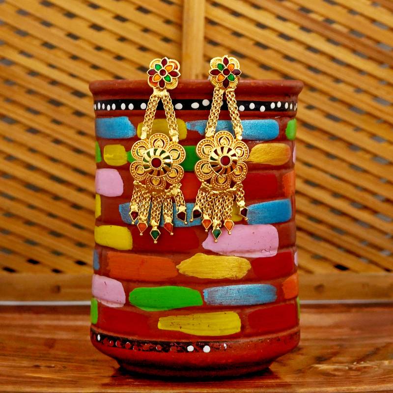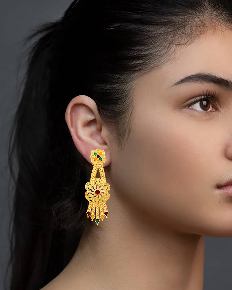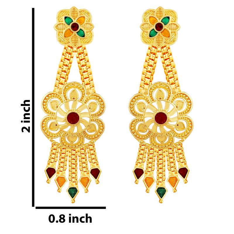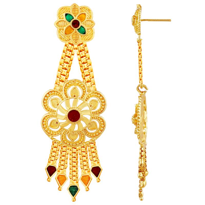 | Product Description | These Floral Theme Earringsare Made From Tin And Lead Free Brass Metal And Has One Gram Gold Plating And Are Piereced One . A High Quality Hand Meena Is Done For Original Look And Finish.Back.These Can Be Wear Regularly Or On Wedding Occasion Need Very Little Care Just Wipe With Dry Cloth After Every Use.Matches With All Traditional Dresses. |