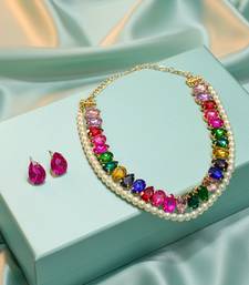 | Product Description | The Necklace With Earrings With Earrings Is Embellished With Combination Of Aaa Grade Pearl Mala And Multicolour Glass Cz Crystal Stones And Comes With An Adjustable Chain Secured By A Lobster Claw Clasp |