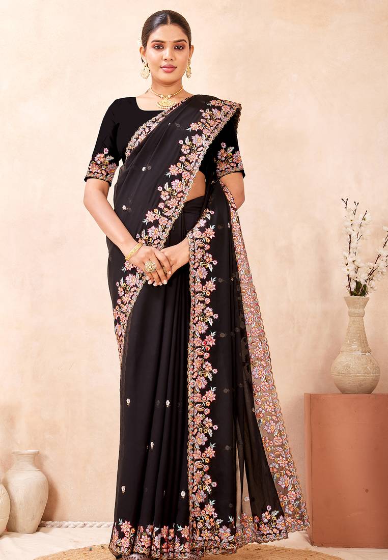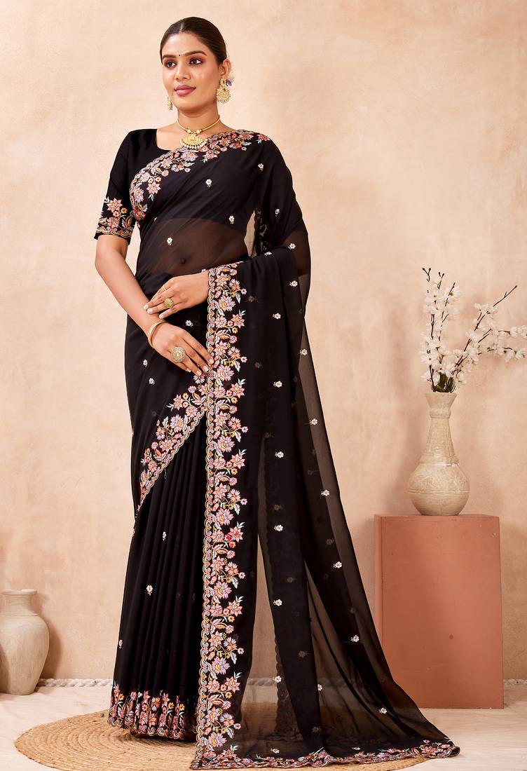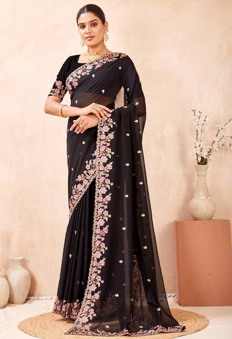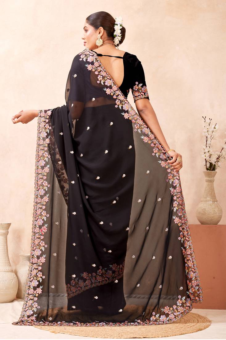 | Product Name | Black Kashmiri Resham Embroidered Work Georgette Saree Sari | |
