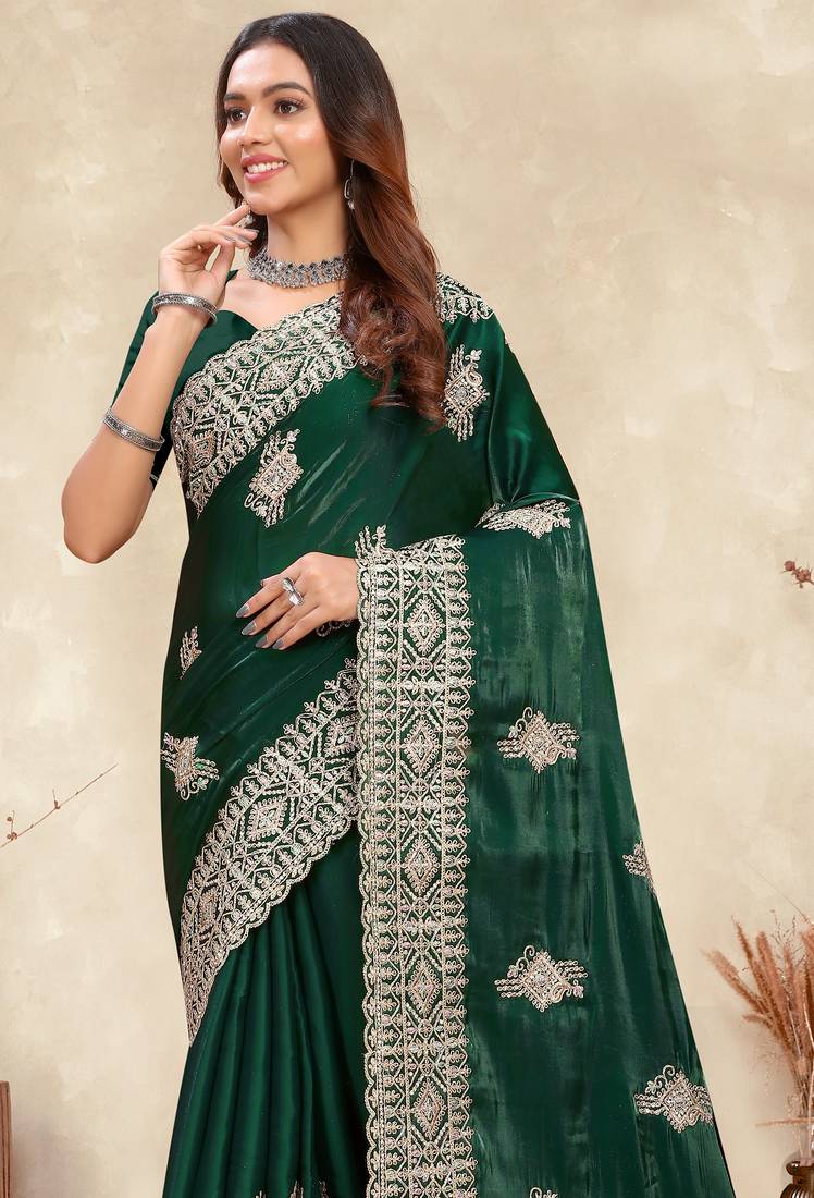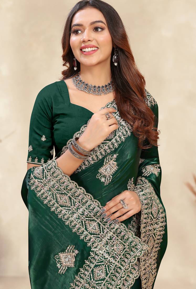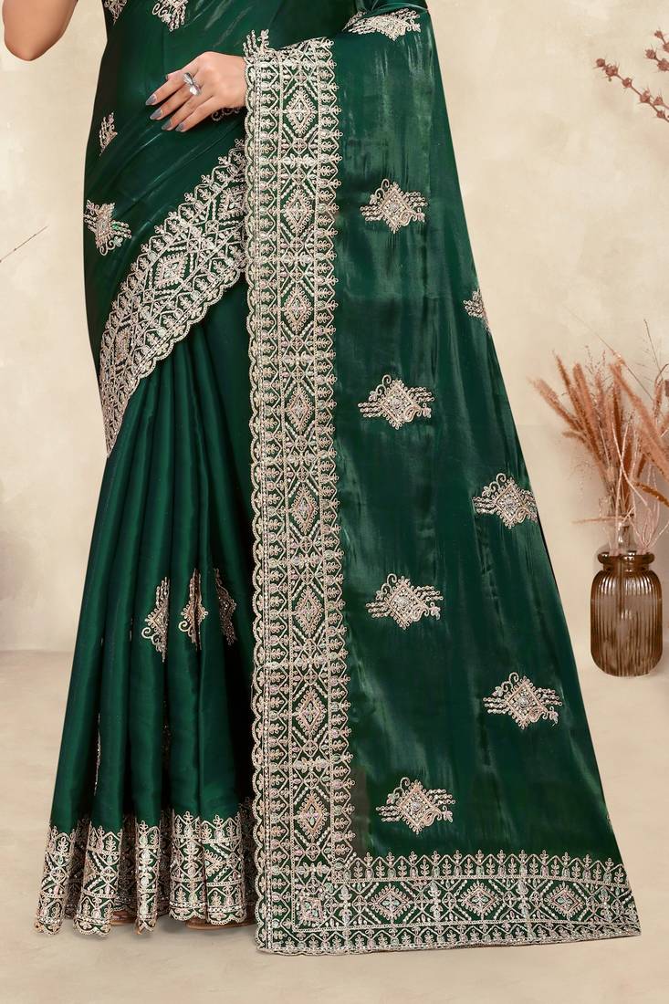 | Product Name | Dark Green Crepe Silk Saree With Coding Zarkan Work | |