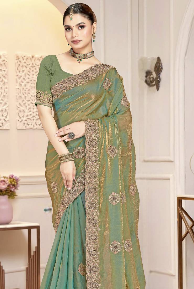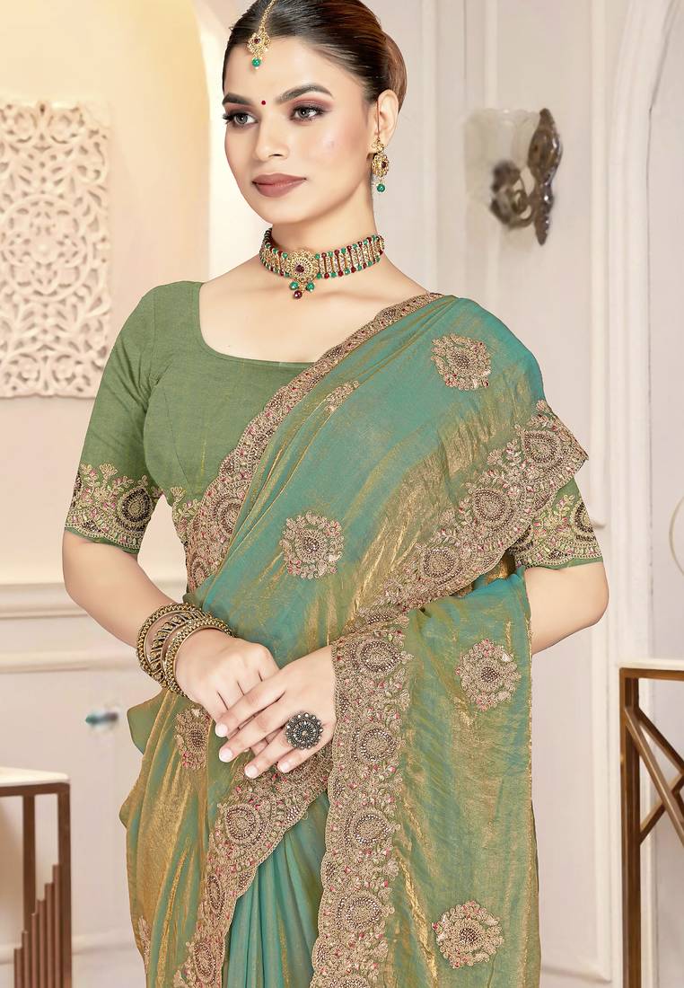 | Product Name | Green Color Heavy Coding Zarkan Embroidered Work Satin Silk Saree Sari | |