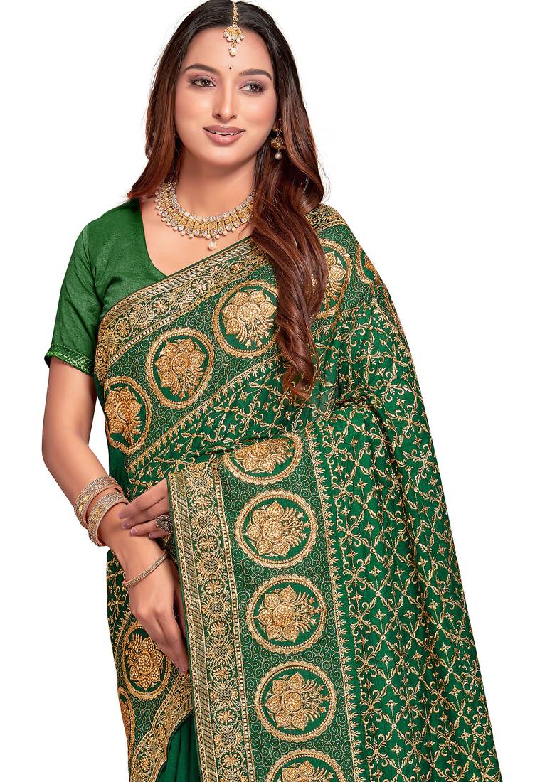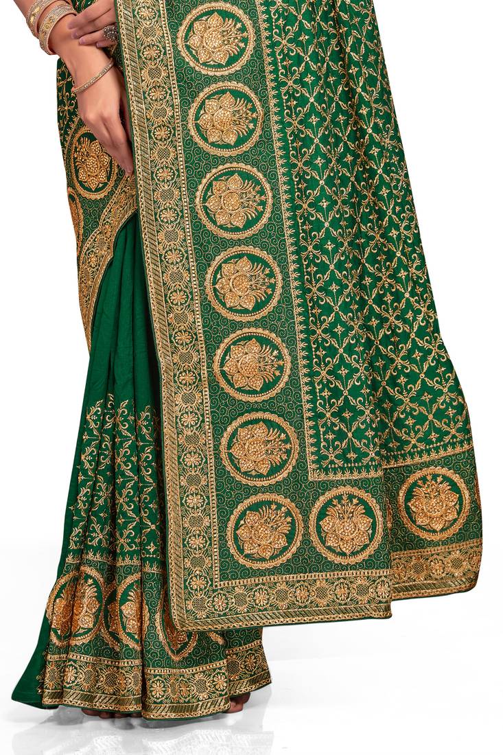 | Product Name | Green Sequin Embroidered Work Vichitra Silk Blend Saree For Women | |