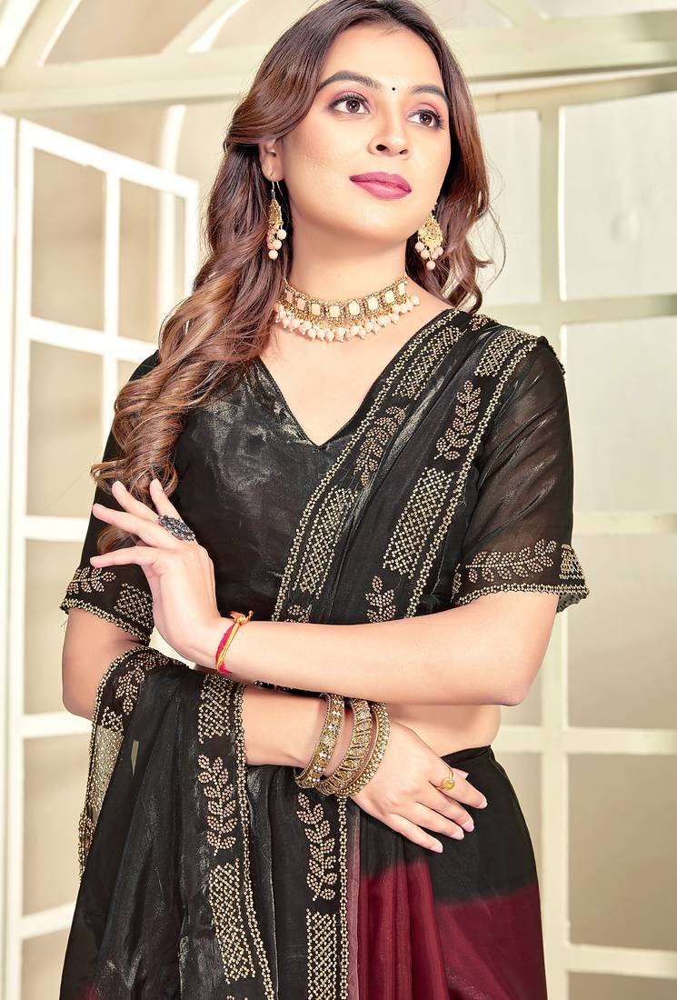 | Product Name | Maroon Black Half N Half Trending Designer Saree For Women | |