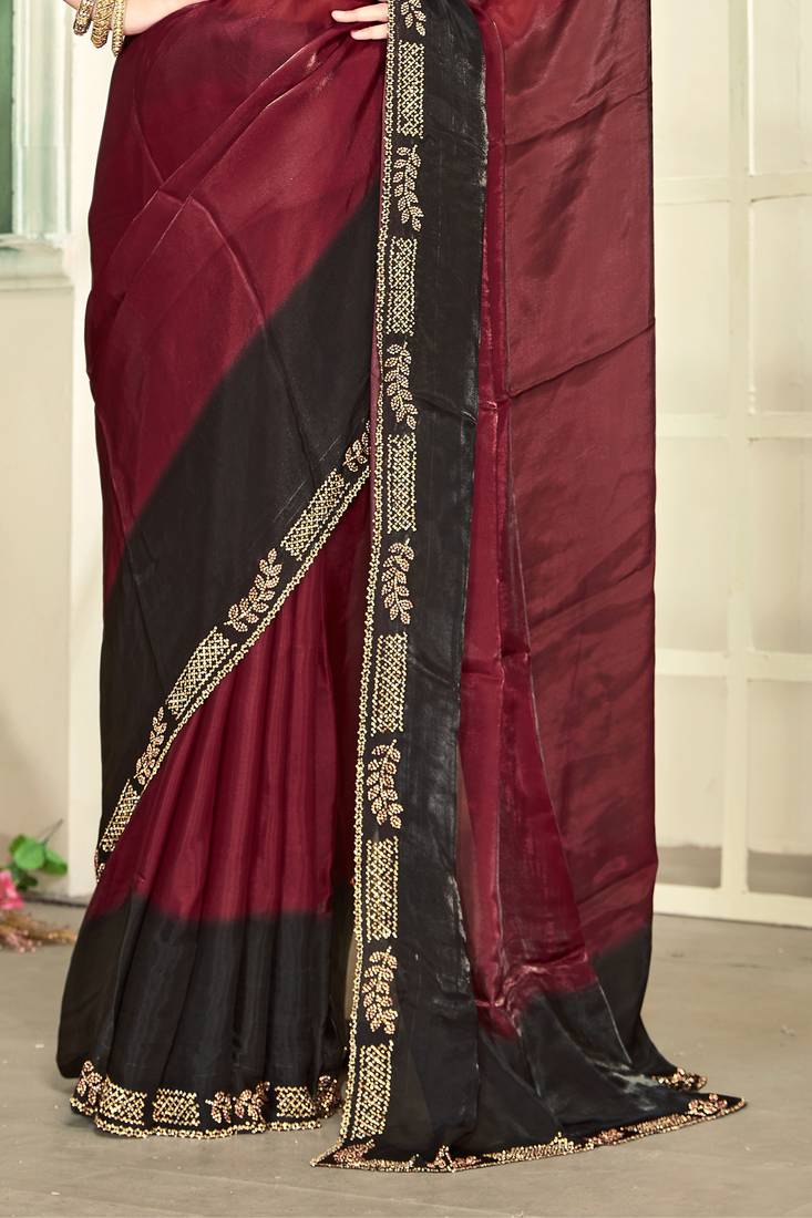 | • | Saree | : | Color- Maroon / Fabric- Satin |