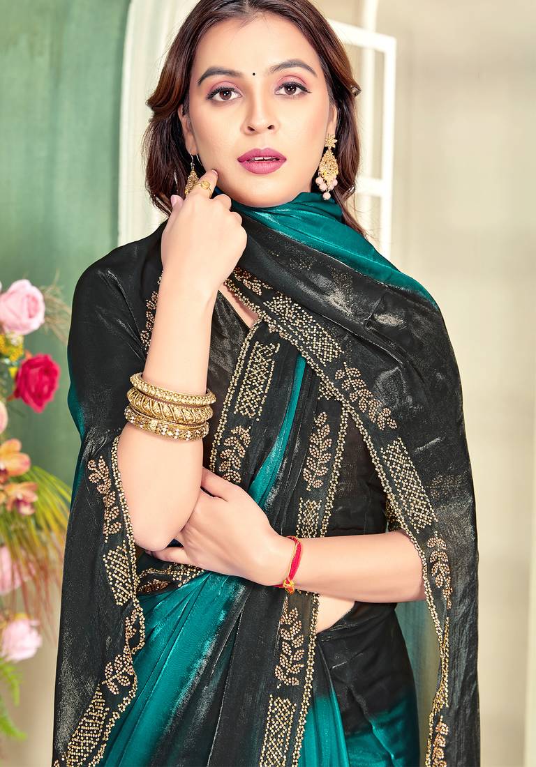 | • | Saree | : | Color- Teal / Fabric- Satin |