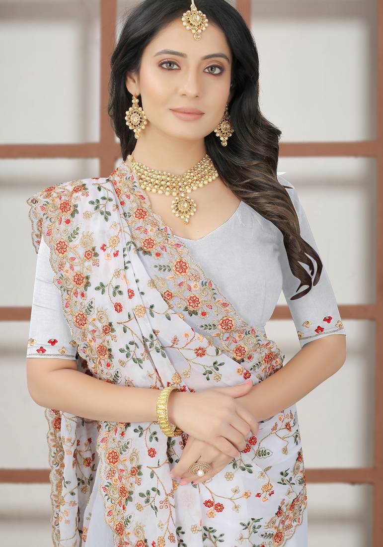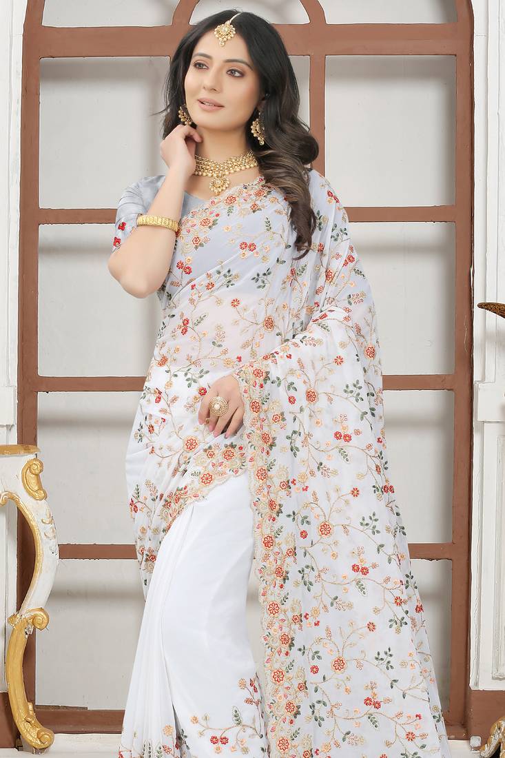 | Product Name | White Sequin Zari Resham Embroidered Work Georgette Designer Saree For Women | |