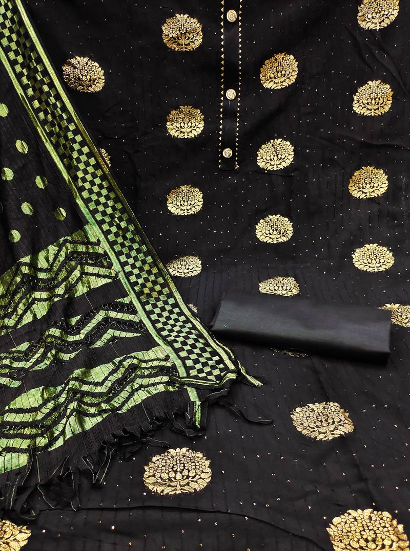 | Product Description | Women's Black Unstitched Designer Weaving And Sequence Work With Fancy Dupatta Cotton Jacquard Dress Material Having Black Color Bottom Of Cotton Fabric And Black Color Dupatta Of Rasal Net Material With Beautifull Black Colour In Cotton Jacquard Rasal Net Fabric With Work Of Designer Weaving And Sequence Work With Fancy Dupatta|| Images Are For The Referance Purpose Only, Color Of The Actual Product May Little Vary From The Image Due To Screen Resolution |