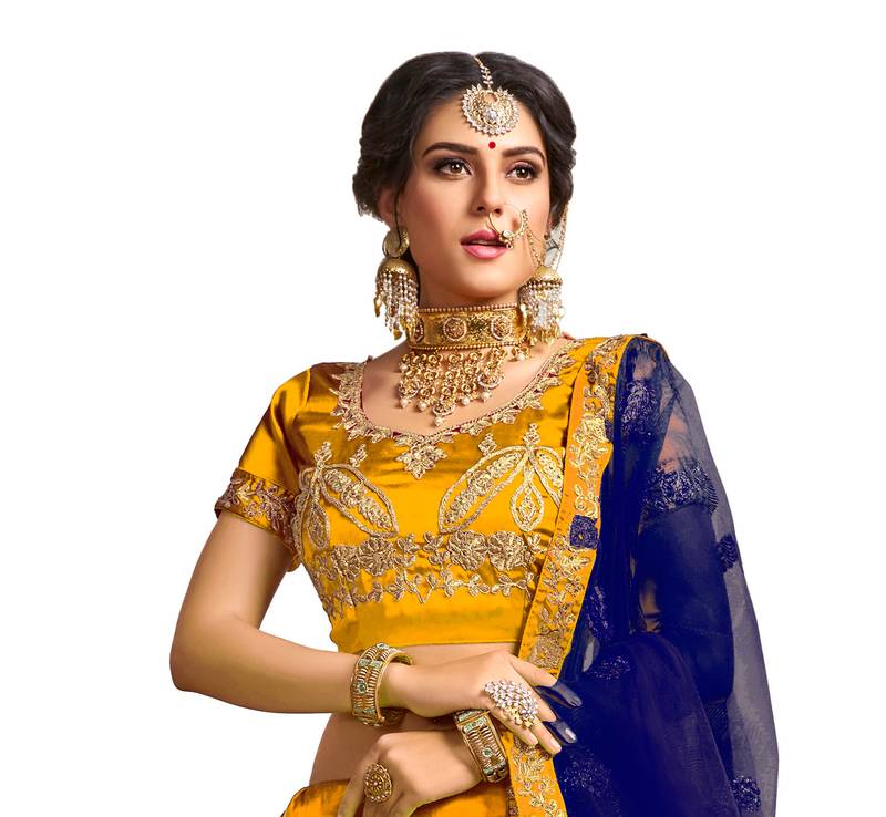 | Product Description | Women's Gold Semi Stiched Embroidered Sattin Silk Lehenga Choli Having Gold Color Un Stitched Choli Of Sattin Silk Fabric And Blue Color Dupatta Of Nett Material || Images Are For The Referance Purpose Only, Color Of The Actual Product May Little Vary From The Image Due To Screen Resolution |