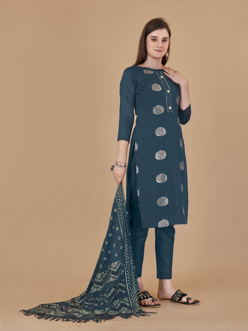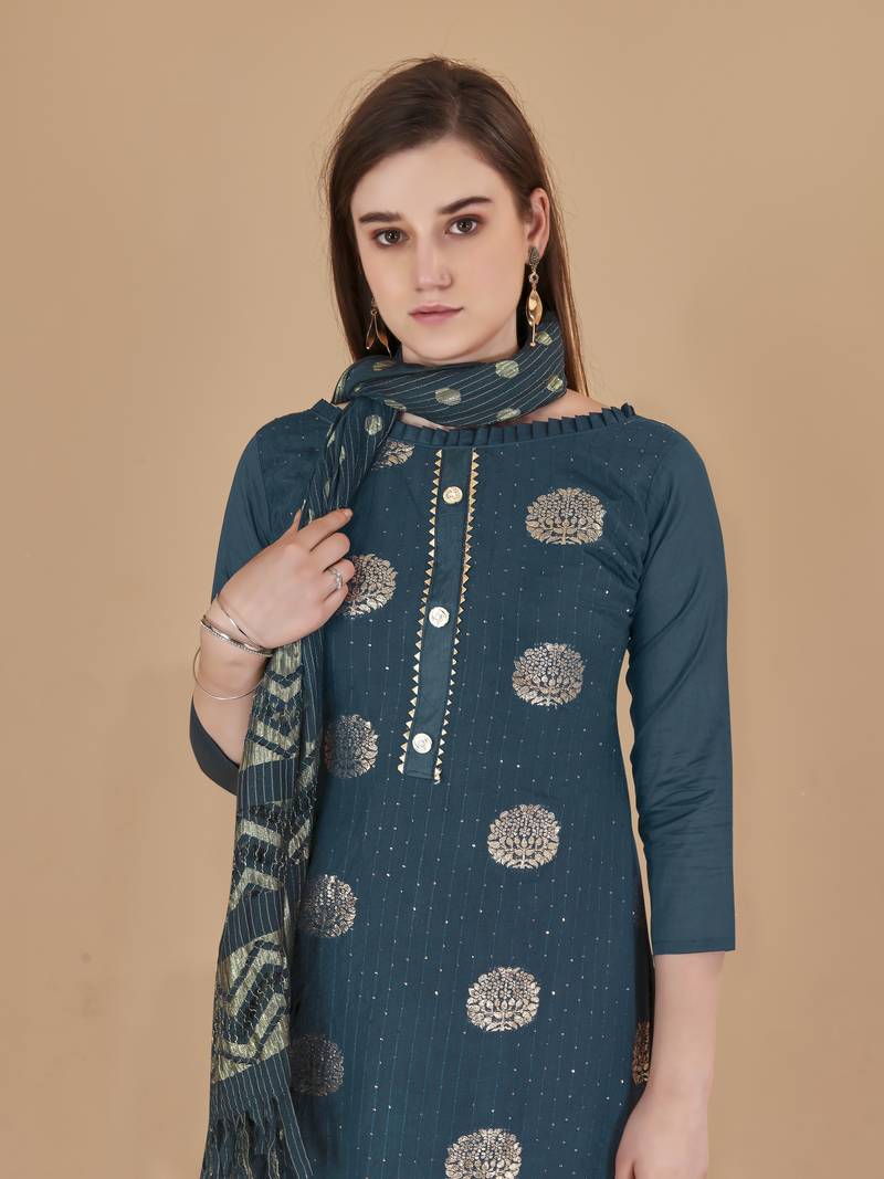 | Product Description | Women's Rama Unstitched Designer Weaving And Sequence Work With Fancy Dupatta Cotton Jacquard Dress Material Having Rama Color Bottom Of Cotton Fabric And Rama Color Dupatta Of Rasal Net Material With Awesome Rama Colour In Cotton Jacquard Rasal Net Fabric With Work Of Designer Weaving And Sequence Work With Fancy Dupatta|| Images Are For The Referance Purpose Only, Color Of The Actual Product May Little Vary From The Image Due To Screen Resolution |