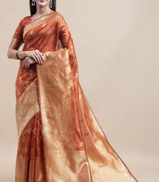 Orange woven art silk saree with blouse