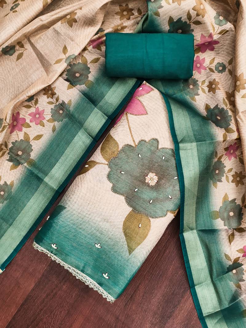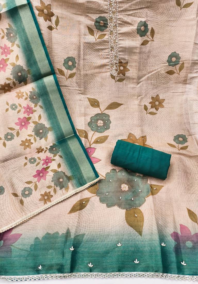 | Product Description | Women's Beige Unstitched Hand Work And Fancy Border Simmer Cotton Silk Dress Material Having Sea Green Color Unstitched Bottom Of Rayon Fabric And Beige Color Dupatta Of Banarasi Organja Material With Amazing Beige Colour In Simmer Cotton Silk Rayon Banarasi Organja Fabric With Work Of Heavy Hand Work And Fancy Border With Designer Printed Dupatta|| Images Are For The Referance Purpose Only, Color Of The Actual Product May Little Vary From The Image Due To Screen Resolution |