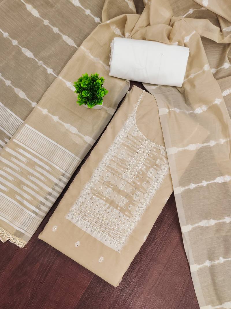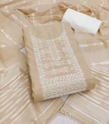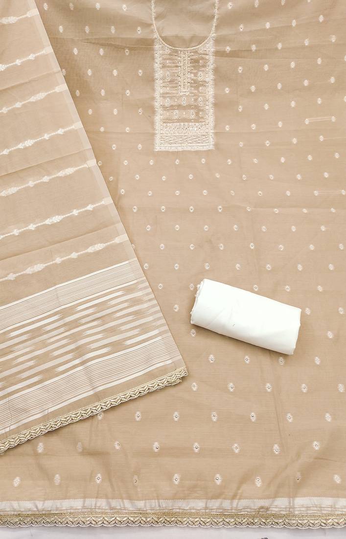 beige weaving handwork silk dress material unstitched