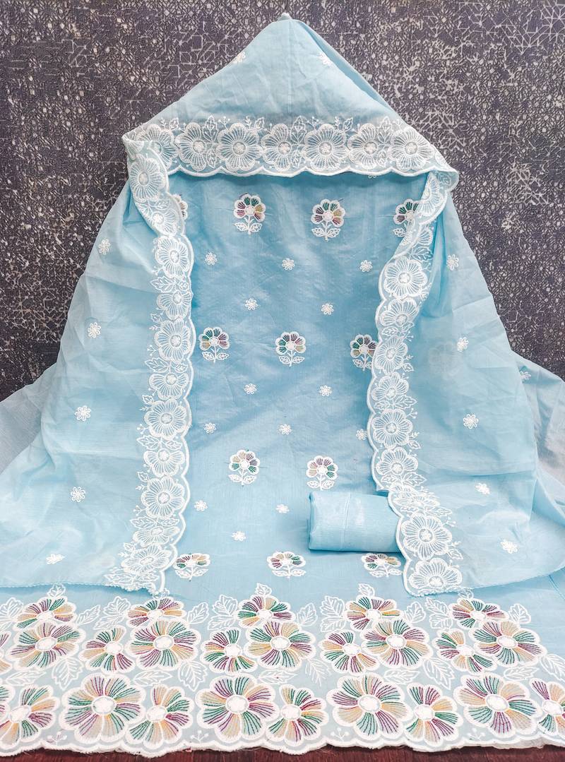 | Product Description | Women's Sky Blue Unstitched Heavy Embroidery Chanderi Cotton Dress Material Having Sky Blue Color Unstitched Bottom Of Santoon Fabric And Sky Blue Color Dupatta Of Chanderi Cotton Material With Charming Sky Blue Colour In Chanderi Cotton Santoon Fabric With Work Of Heavy Embroidery And Fancy Border With Designer Embroidered Dupatta|| Images Are For The Referance Purpose Only, Color Of The Actual Product May Little Vary From The Image Due To Screen Resolution |