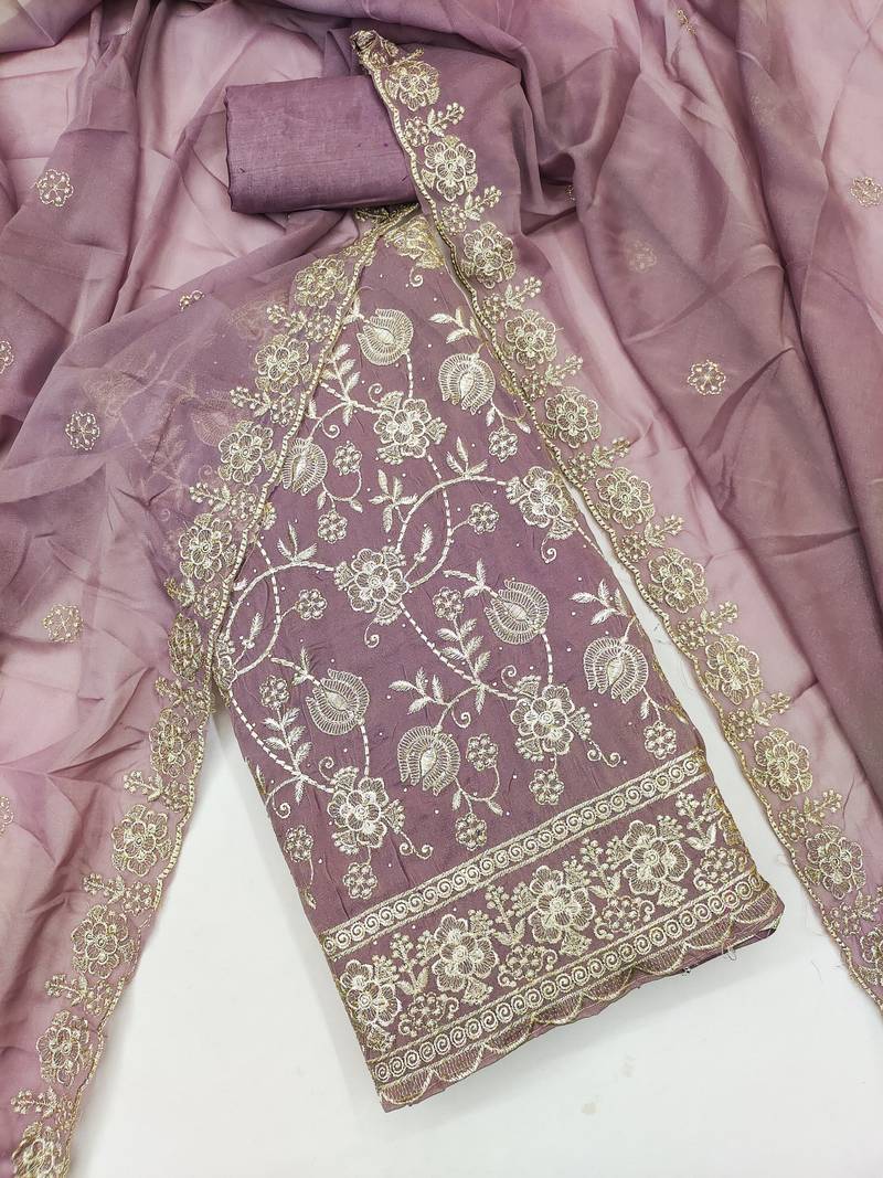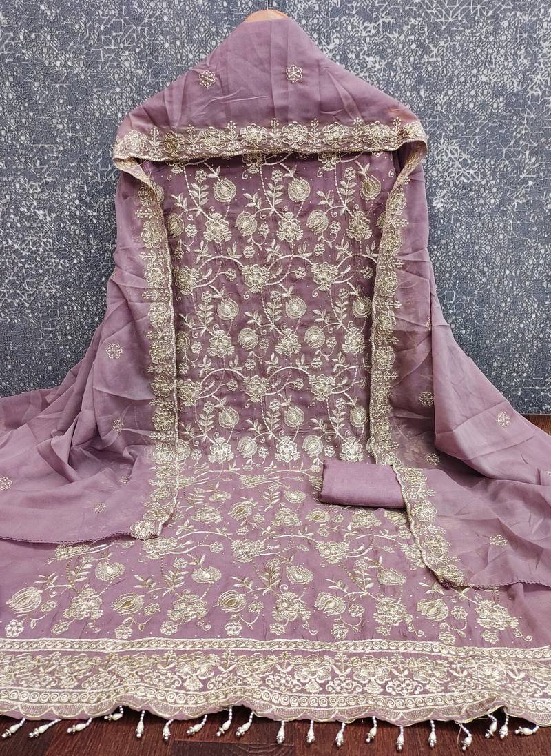 levender embroidery georgette dress material unstitched