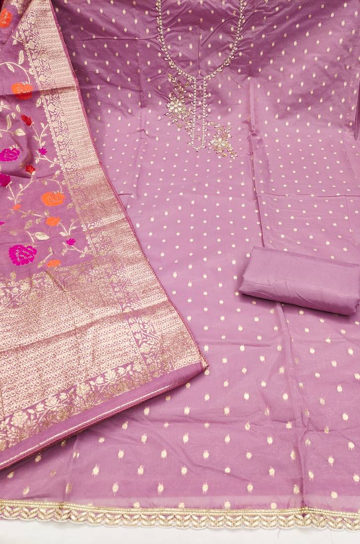 | Product Description | Women's Levender Unstitched Heavy Weaving Handwork And Fancy Border Simmer Banarasi Dress Material Having Levender Color Unstitched Bottom Of Dull Santoon Fabric And Levender Color Dupatta Of Banarasi Material With Awesome Levender Colour In Simmer Banarasi Dull Santoon Fabric With Work Of Heavy Weaving Handwork And Fancy Border With Designer Woven Dupatta|| Images Are For The Referance Purpose Only, Color Of The Actual Product May Little Vary From The Image Due To Screen Resolution |