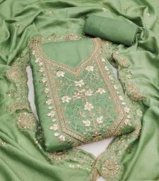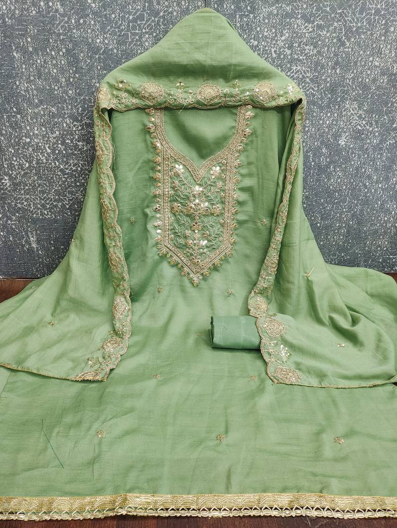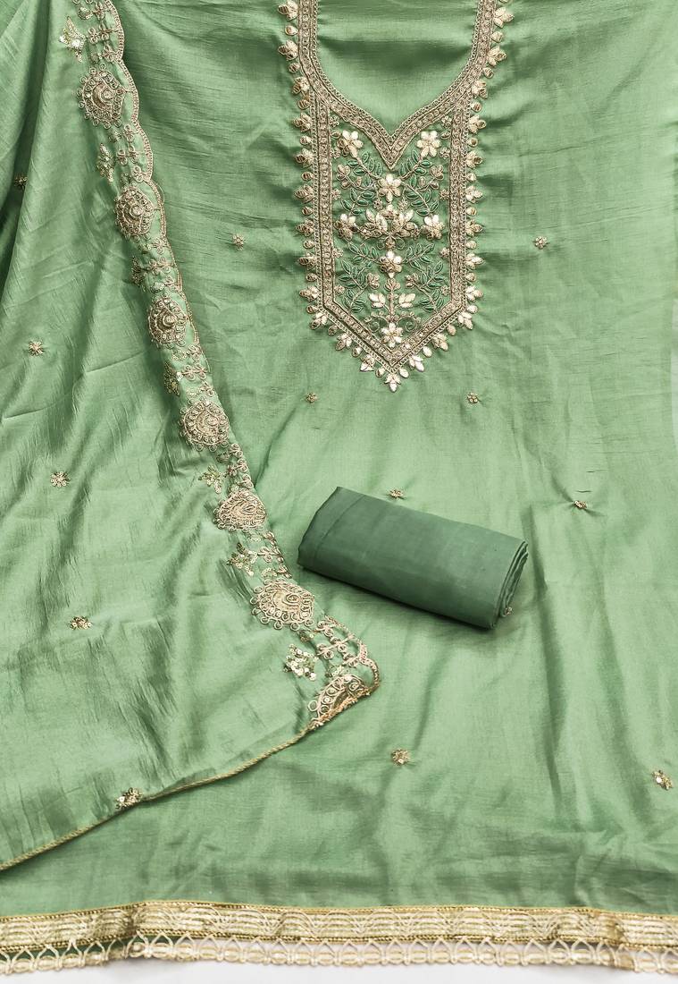 light green embroidery vichitra dress material unstitched
