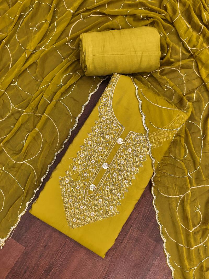 | Product Name | Women's Mehandi Embroidery Glass Cotton Dress Material | |