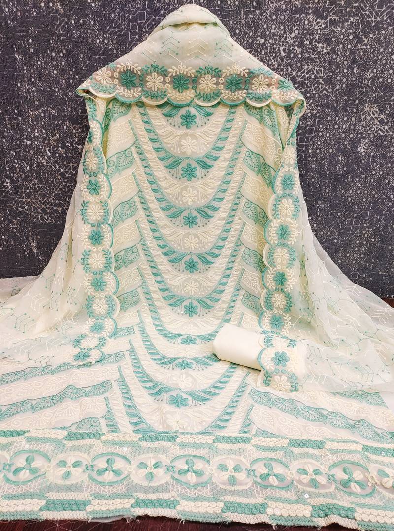 multi embroidery georgette dress material unstitched